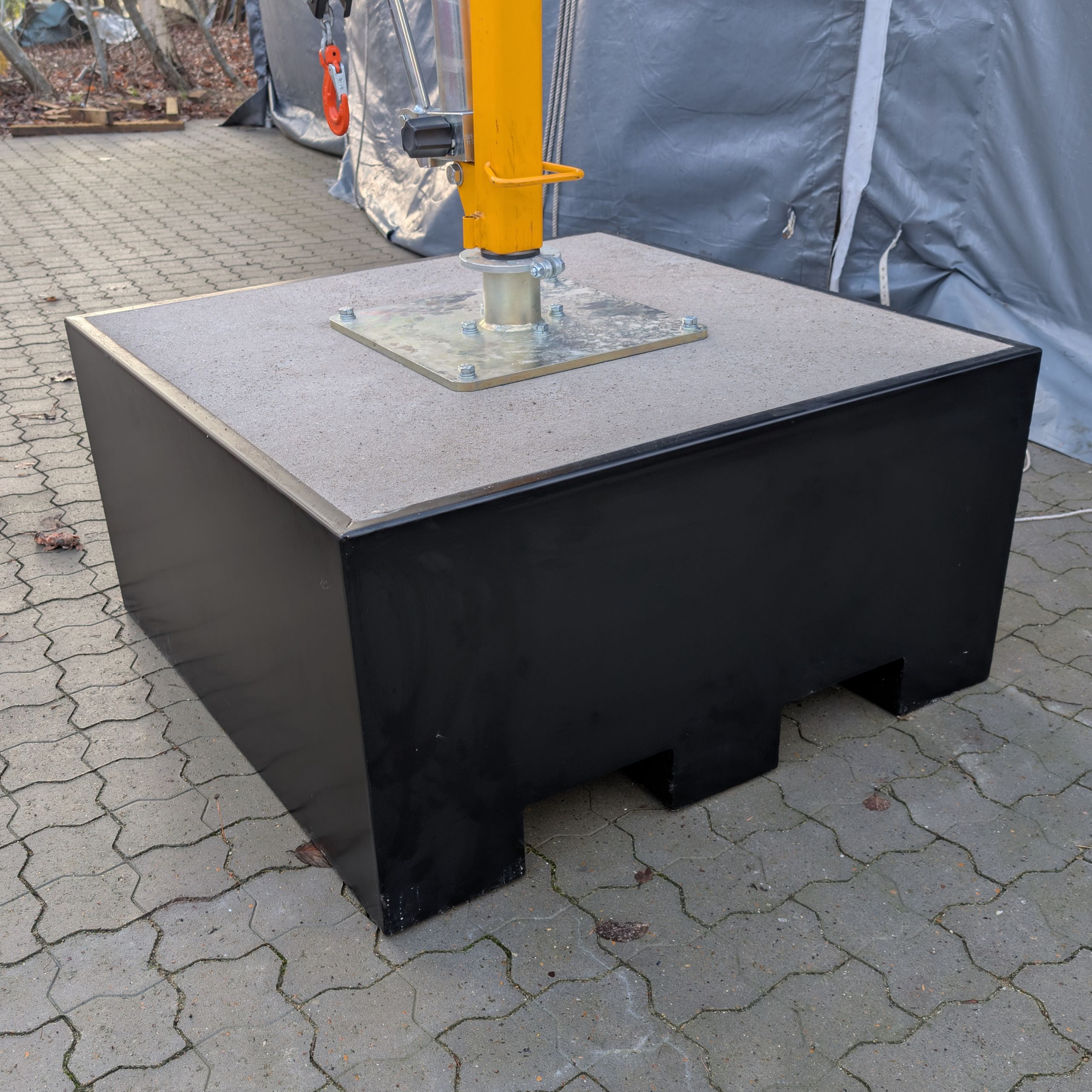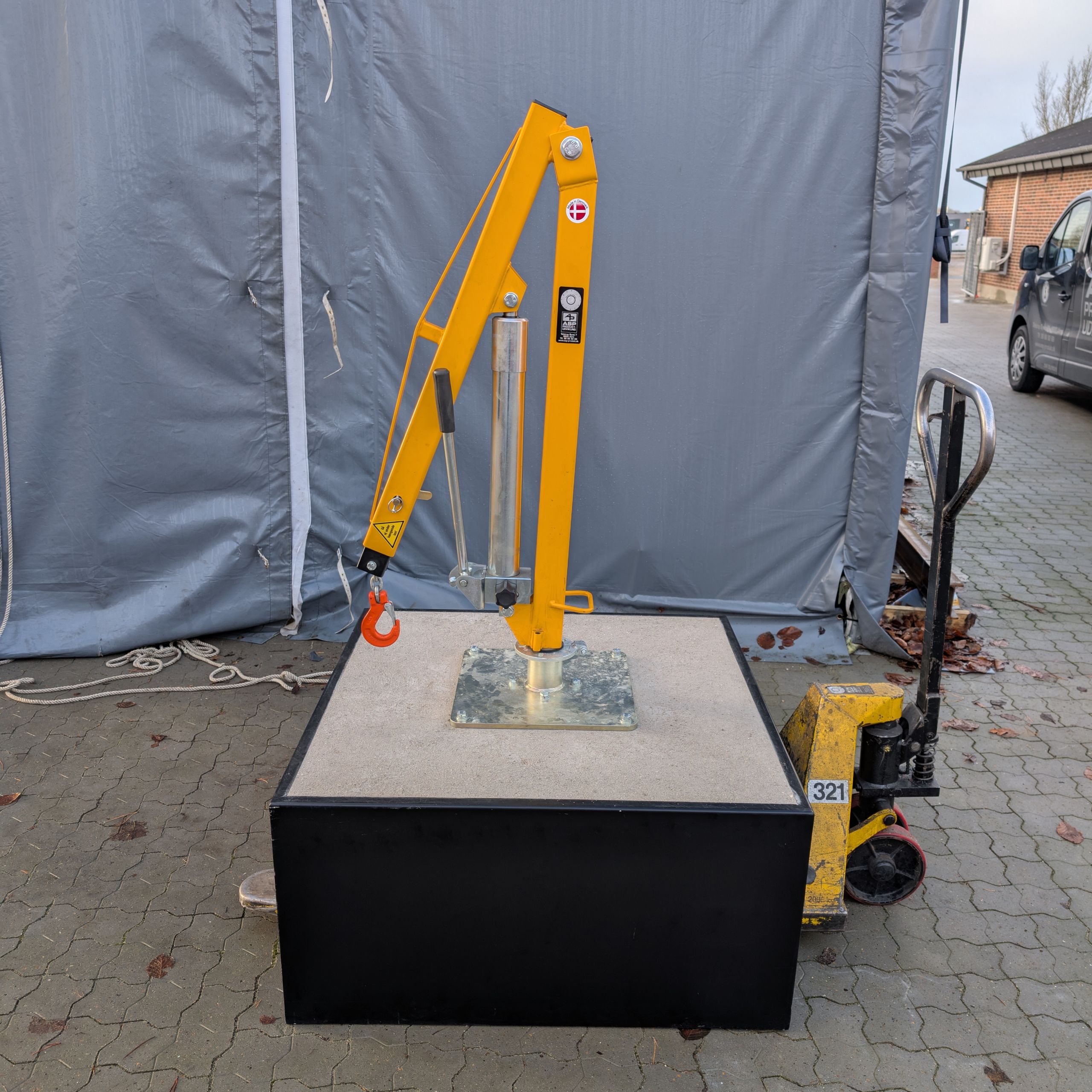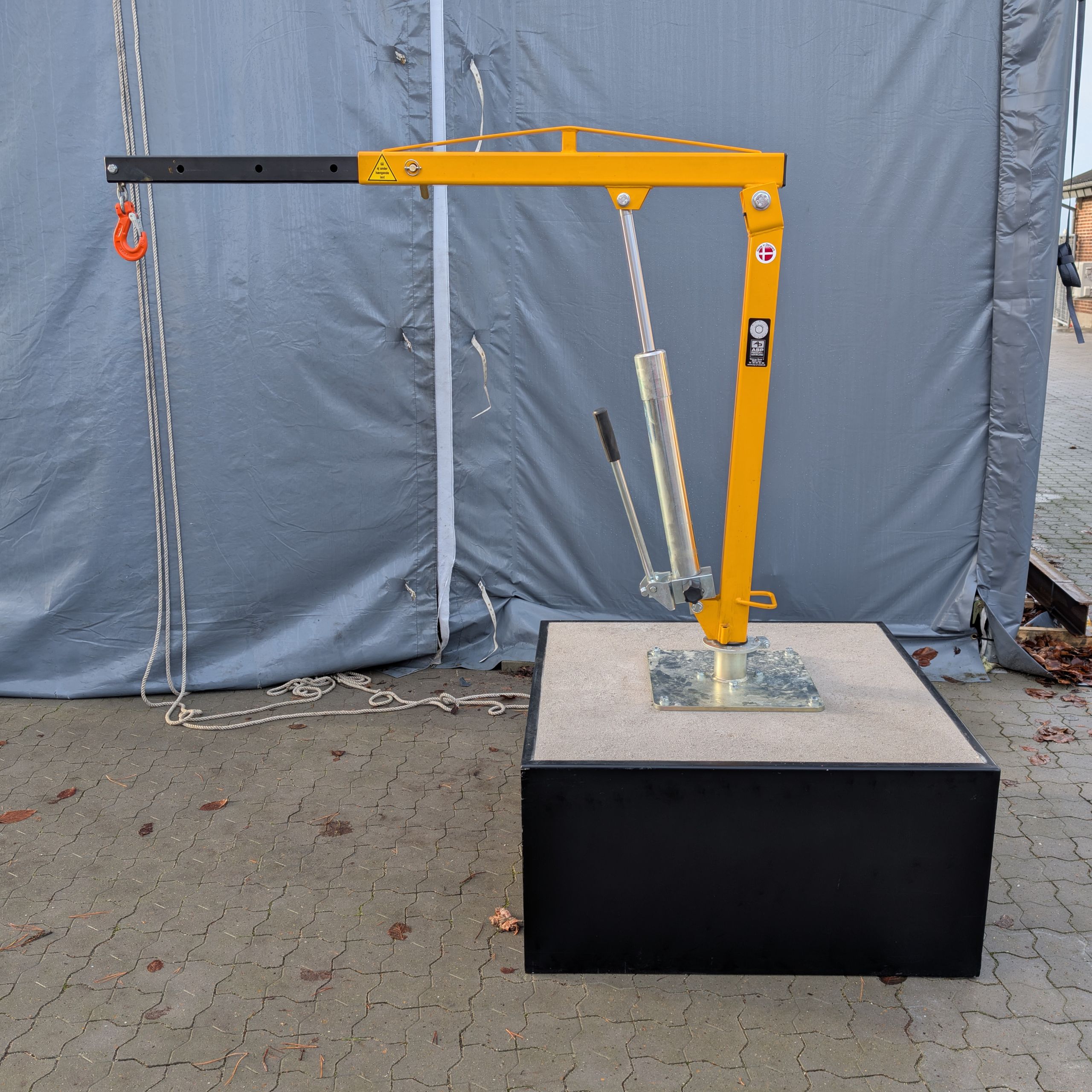Betonklodsen er bygget med vores Knap On-system, hvilket betyder, at alle vores kraner passer, uanset model. Betonklodsen og kranen kan nemt flyttes rundt i produktionen eller på byggepladsen, så du altid har et sikkert og stabilt løftepunkt.