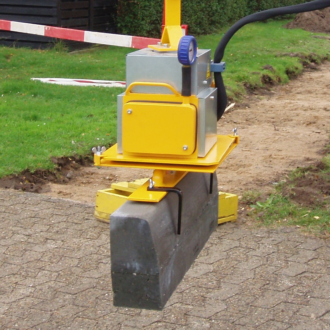 Denne adapter er ideel til at sætte kantsten hurtigt og præcist, direkte fra pallen og hen til placeringen. Den gør arbejdet mere effektivt og ergonomisk, og du undgår tunge løft og manuel justering. Sugefoden kan justeres i grader, så den passer til både fortovskantsten og rabatkantsten.